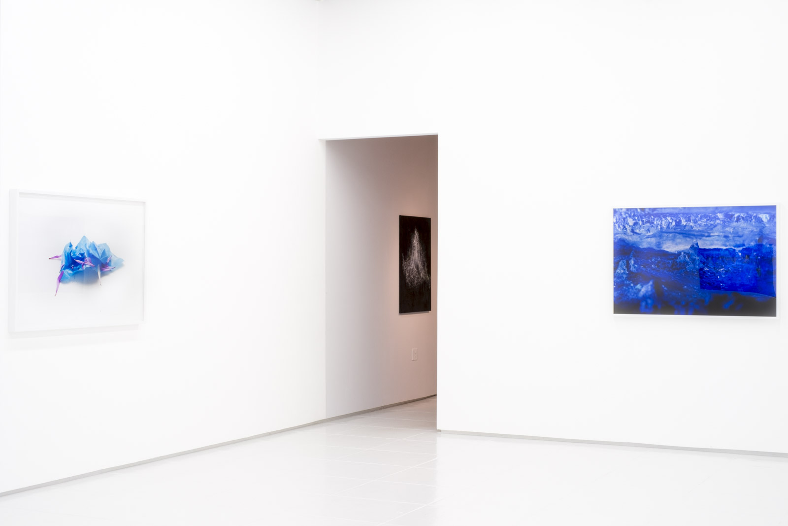The arc of Stone’s work bridges the intersection between truth and fiction, reality and fantasy, and the natural and artificial. Stone’s photographs and paintings are world-making exercises, in which traditional notions of picture making are embraced and subverted. The landscapes and objects depicted in Stone’s works form perceptual mirages made possible through manipulations of scale, color, code, and paint. Simultaneously enormous and impossibly small, an improbably blue cave sits next to a distant, tiny super moon and a chandelier hovers in front of a cloudy, black tromp l’oeil sky. Stone also manipulates the code of digital images, updating the storied traditions of still-life and landscape to create colorful and elegant glitched bouquets and sunsets. The show’s title is a summation and inversion of utopian thinker Ernst Bloch’s sentiment that utopians create their idealized visions of the future through close scrutiny of the world near at hand. World making, thus, is equal parts critical inquiry and hopeful future casting.
